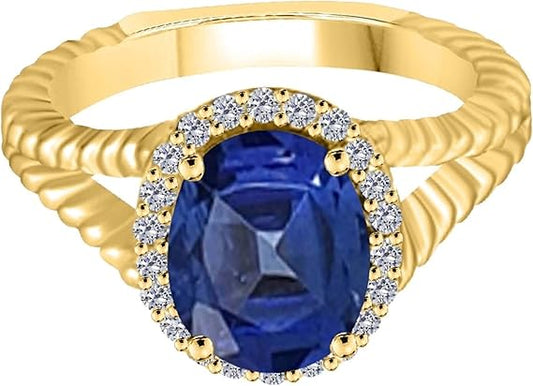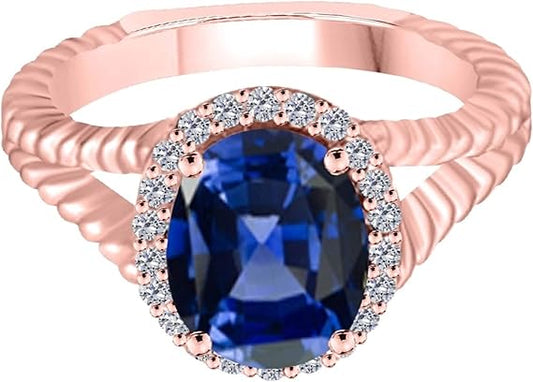 Aonejewelry 1.95 Carat Sapphire And Diamond Ring In 10K Solid Rose, White & Yellow Gold, Best Valentinesday Gift