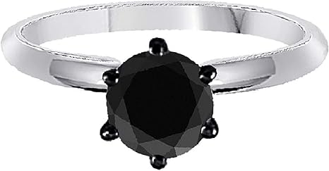 Black Diamond Solitaire Engagement Ring In 10K White Gold (Available In 0.50-3.00 Carat), Best Valentinesday Gift