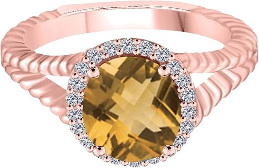 Aonejewelry 1.95 Carat Diamond And Oval Shape Citrine Ring In 10K Solid Rose, White & Yellow Gold, Best Valentinesday Gift