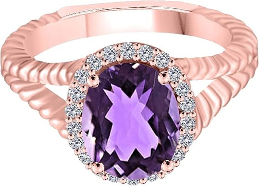 Aonejewelry 1.95 Carat Diamond And Oval Shape Amethyst Ring In 10K Solid Rose, White, Yellow Gold, Best Valentinesday Gift