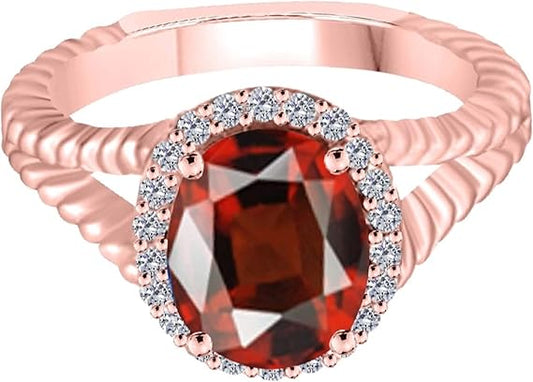 Aonejewelry 10K Diamond And Oval Shape Garnet Ring In Solid Rose, White & Yellow Gold, Best Valentinesday Gift