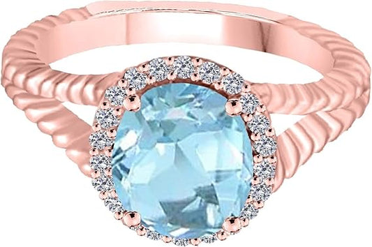 Aonejewelry Oval Shape Blue Topaz And Diamond Ring 1.95 Carat In 10K Solid Rose, White, Yellow Gold, Best Valentinesday Gift