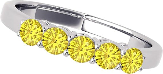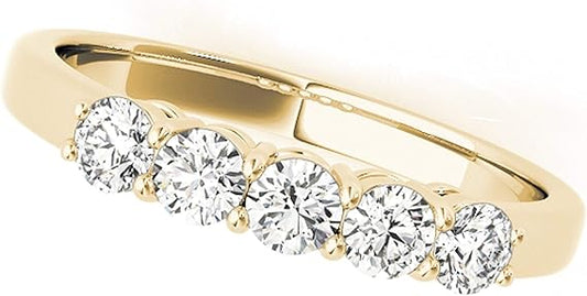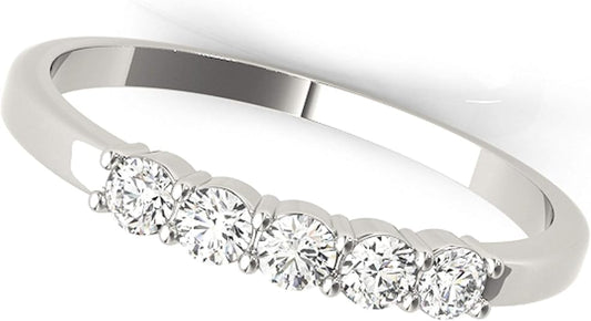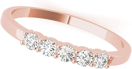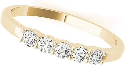 AoneJewelry Five Stone 0.25 Carat Diamond Engagement Wedding Band In 10K Solid Rose, White & Yellow Gold, Best Valentinesday Gift