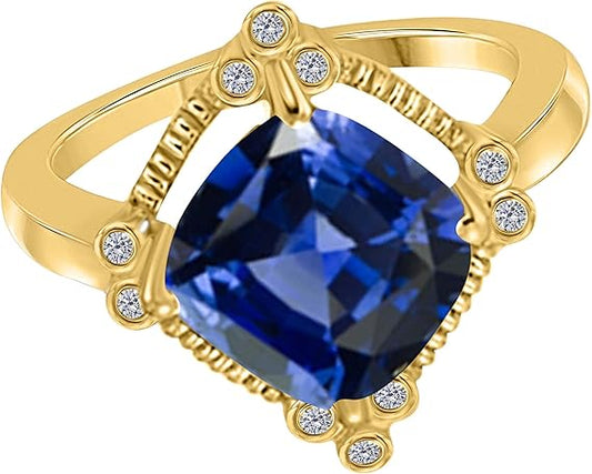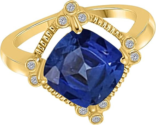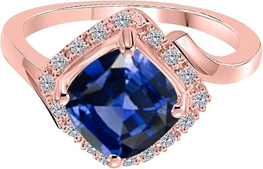 Aonejewelry Sapphire And Diamond Ring 2.85 Carat In 10K Solid Rose, White & Yellow Gold, Best Valentinesday Gift