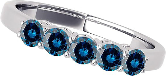 Aonejewelry Blue Diamond 10K Solid Rose, White & Yellow Gold 0.25 Carat Five Stone Ring, Best Valentinesday Gift