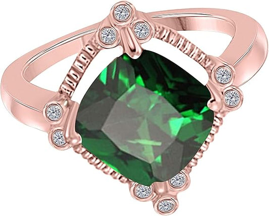 Aonejewelry 2.85 Carat Cushion Cut Emerald And Diamond Ring In 10K Solid Rose, White & Yellow Gold, Best Valentinesday Gift