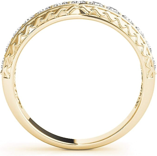 AoneJewelry 1/2 Carat Diamond Wedding Band Finished With 14K Solid Yellow Gold, Best Valentinesday Gift