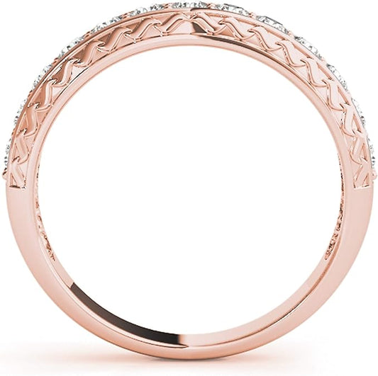 Aonejewelry Diamond Wedding Milgrained Band 0.40 Carat In 10K Solid Rose Gold, Best Valentinesday Gift