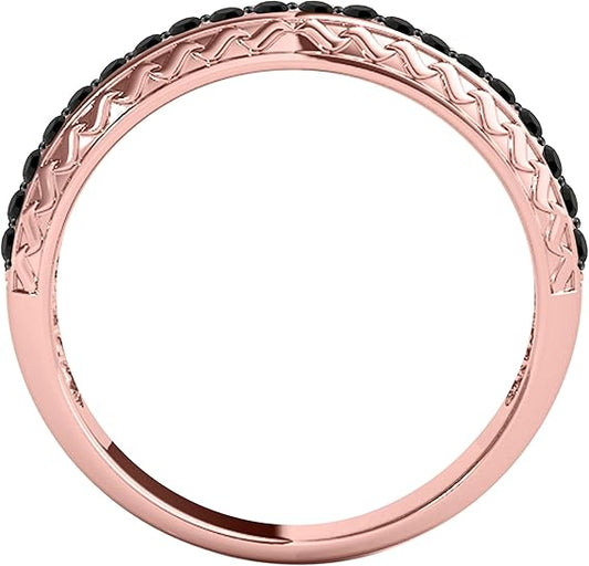 Aonejewelry Black Diamond 0.50 Carat Wedding Band In 14K Solid Rose, Yellow And White Gold, Best Valentinesday Gift