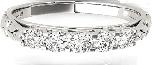Aonejewelry 1.00 Carat Five Stone disigned Diamond Wedding Band In 10K Solid Rose, White & Yellow Gold, Best Valentinesday Gift