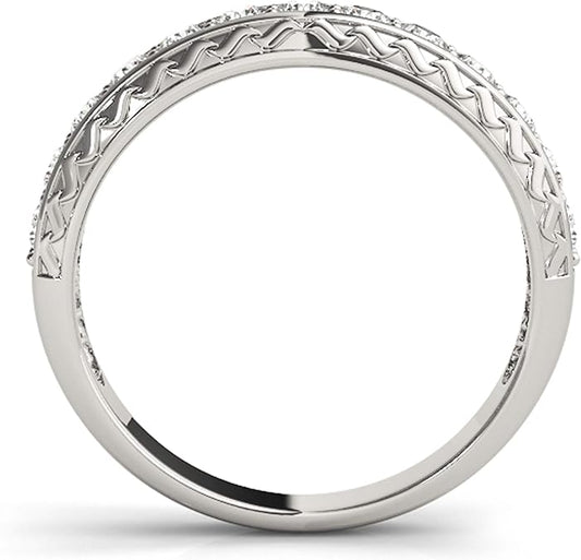 AoneJewelry 1/2 Carat Diamond Wedding Band Finished With 14K Solid White Gold, Best Valentinesday Gift