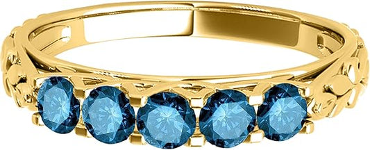 Aonejewelry Blue Diamond 10K 1.00 Carat Five Stone Wedding Band In Rose, White And Yellow Gold, Best Valentinesday Gift