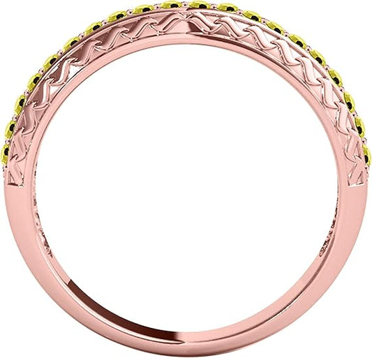 AoneJewelry 14K Rose, White And Yellow Gold 0.50 Carat Yellow Diamond Engagement Wedding Band, Best Valentinesday Gift