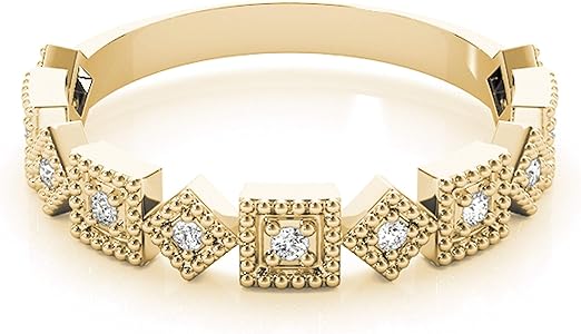 AoneJewelry 18K 1/4 Diamond Trio Stackable Wedding Band In Gold, Best Valentinesday Gift