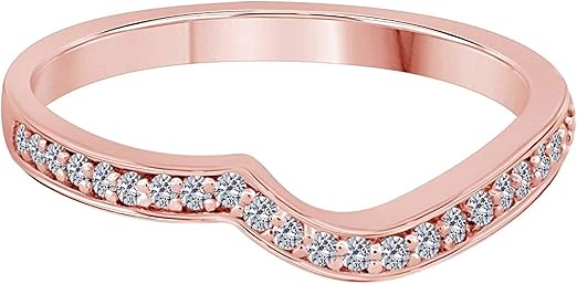 AoneJewelry 0.25 Carat Black Diamond Curved Wedding Band In 10K Solid Rose Gold, Best Valentinesday Gift