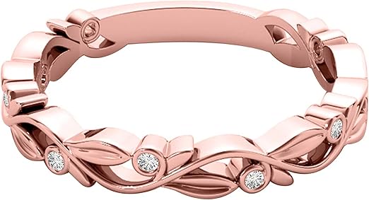 Aonejewelry 0.07 Carat Diamond Vintage Lightweight Wedding Band In 10K Solid Rose, White & Yellow Gold, Best Valentinesday Gift