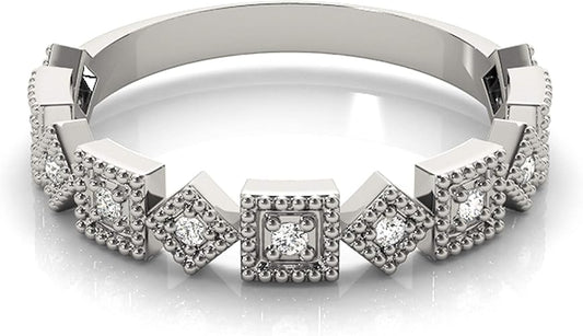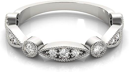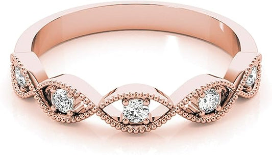 Aonejewelry 0.30 Carat Diamond Milgrained Wedding Band In 10K Solid Rose, White & Yellow Gold, Best Valentinesday Gift
