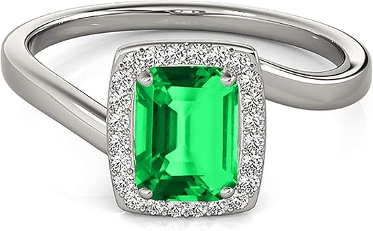 Aonejewelry 1.00 Carat Emerald Shape Created Emerald And Diamond Ring In 10K Solid Rose, White & Yellow Gold, Best Valentinesday Gift