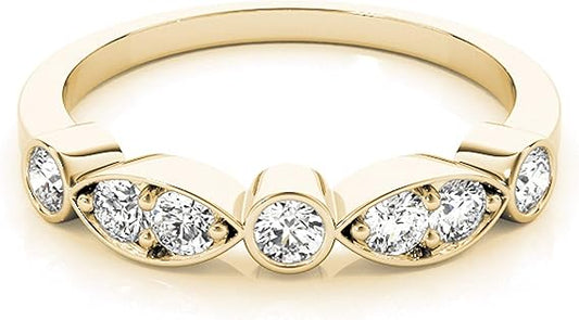 AoneJewelry White Diamond Engagement Wedding Band In 10K Rose, White & Yellow Gold 0.05 Carat 9 Stone Round Cut Bezel Setting Jewelry Collection