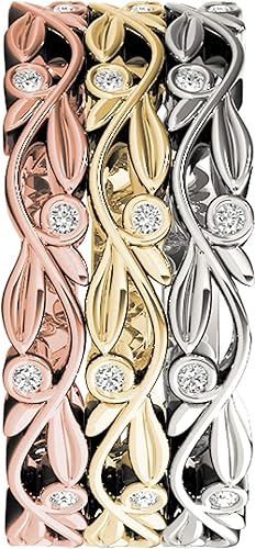 Aonejewelry 0.50 Carat Diamond Stackable Tri-Color Wedding Engagement Band In 10K Gold, Best Valentinesday Gift
