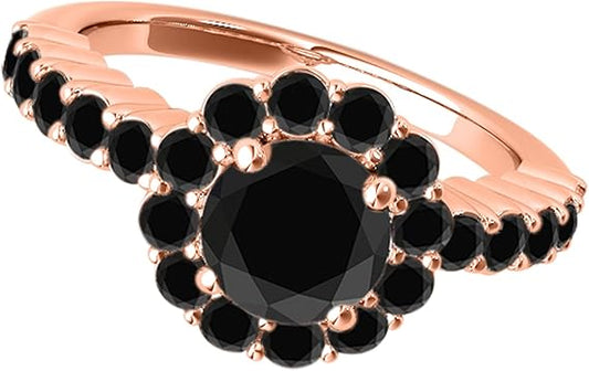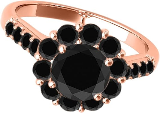 Diamond Engagement Ring For Women 2 Carat Round Cut Black Diamond Prong Setting 19 Stones Engagement Aniversary Ring In 10K Solid Rose, White & Yellow Gold By AoneJewelry Collection