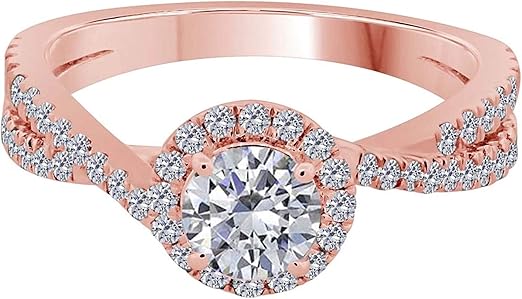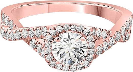 Aonejewelry Aone jewelry 1.00 Carat Natural Diamond Halo Engagement Wedding Ring For Woman Crafted In 14K Rose White And Yellow Gold, Best Valentinesday Gift
