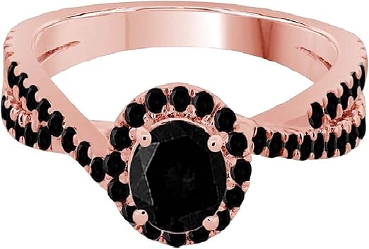 Aonejewelry 1.00 Carat Natural Black Diamond Crafted In 10K Solid Rose White And Yellow Gold Halo Engagement Wedding Ring For Woman, Best Valentinesday Gift