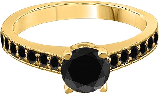 Diamond Engagement Ring For Women 1 Carat Round Cut Black Diamond Prong Setting 23 Stones Engagement Aniversary Ring In 10K Solid Rose, White & Yellow Gold By AoneJewelry Collection