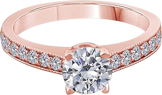 Diamond Engagement Ring For Women 1 Carat Round Shape White Diamond Prong Setting 65 Stone Engagement Aniversary Ring In 14K Solid Rose, White & Yellow Gold By AoneJewelry Collection