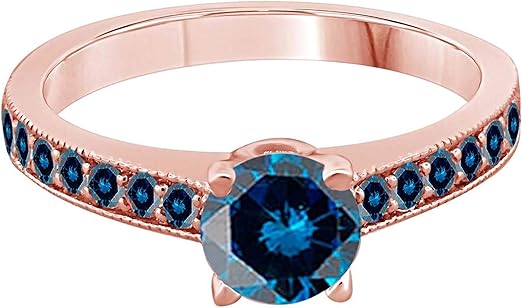 Aonejewelry 1.15 Carat Natural Blue Diamond Engagement Wedding Sparkling Ring Crafted In 10K Solid Rose White And Yellow Gold For Woman, Best Valentinesday Gift