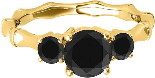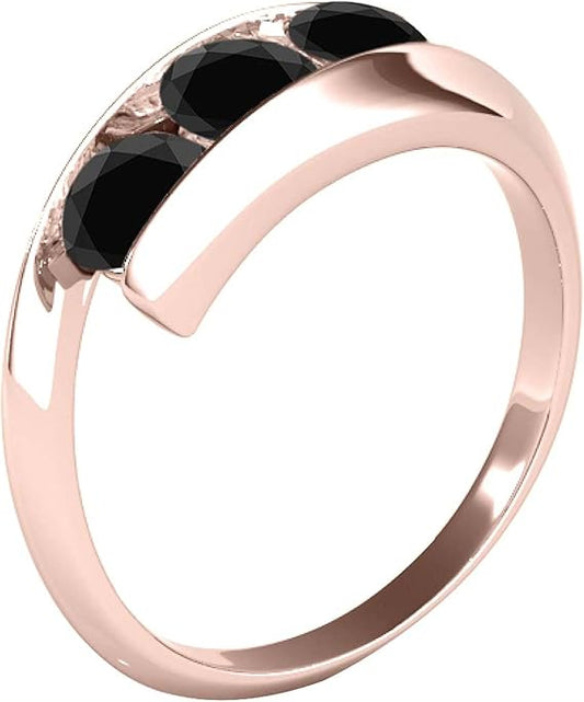 Diamond Engagement Ring For Women 1 Carat Round Cut Black Diamond Prong Setting 3 Stones Engagement Aniversary Ring In 10K Solid Rose, White & Yellow Gold By AoneJewelry Collection