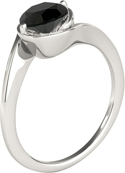 Diamond Engagement Ring For Women 1 Carat Round Cut Black Diamond Prong Setting 1 Stone Engagement Aniversary Ring In 18K Solid White Gold By AoneJewelry Collection