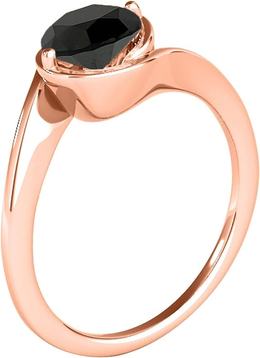 Diamond Engagement Ring For Women 1 Carat Round Cut Black Diamond Prong Setting 1 Stone Engagement Aniversary Ring In 18K Solid Rose Gold By AoneJewelry Collection