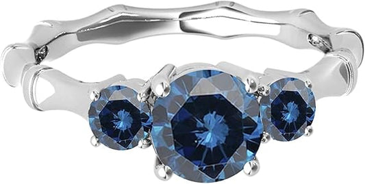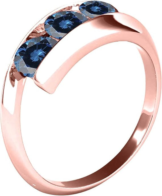 Diamond Engagement Ring For Women 1 Carat Round Cut Blue Diamond Prong Setting 3 Stones Engagement Aniversary Ring In 10K Solid Rose, white & Yellow Gold By AoneJewelry Collection