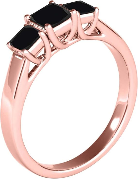 Diamond Engagement Ring For Women 1 Carat Princess Cut Black Diamond Prong Setting 3 Stones Engagement Aniversary Ring In 10K Solid Rose, White & Yellow Gold By AoneJewelry Collection