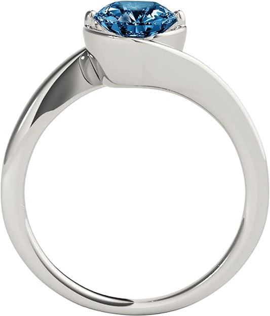 Diamond Engagement Ring For Women 1 Carat Round Cut Blue Diamond Prong Setting 1 Stone Engagement Aniversary Ring In 18K Solid White Gold By AoneJewelry Collection