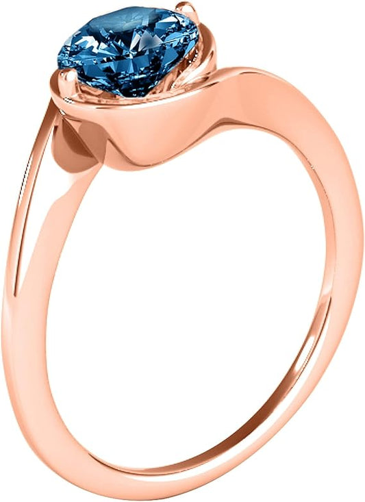 Diamond Engagement Ring For Women 1 Carat Round Cut Blue Diamond Prong Setting 1 Stone Engagement Aniversary Ring In 18K Solid Rose Gold By AoneJewelry Collection