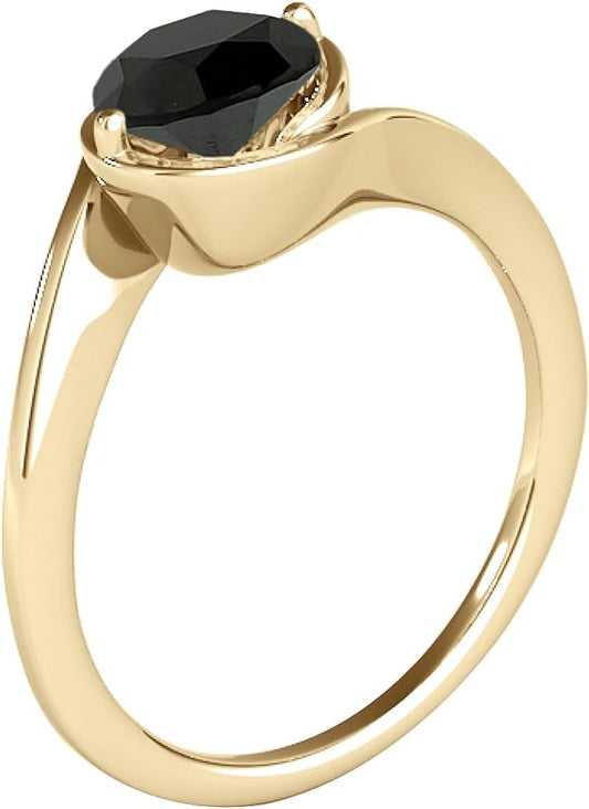 Diamond Engagement Ring For Women 1 Carat Round Cut Black Diamond Prong Setting 1 Stone Engagement Aniversary Ring In 18K Solid Yellow Gold By AoneJewelry Collection