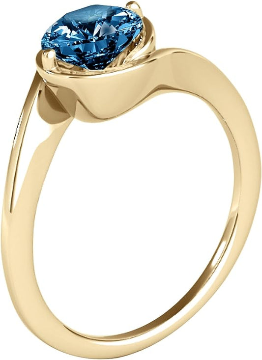 Diamond Engagement Ring For Women 1 Carat Round Cut Blue Diamond Prong Setting 1 Stone Engagement Aniversary Ring In 18K Solid Yellow Gold By AoneJewelry Collection