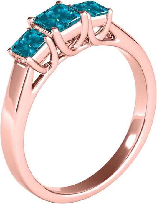 Diamond Engagement Ring For Women 1 Carat Princess Cut Blue Diamond Prong Setting 3 Stones Engagement Aniversary Ring In 10K Solid Rose, White & Yellow Gold By AoneJewelry Collection
