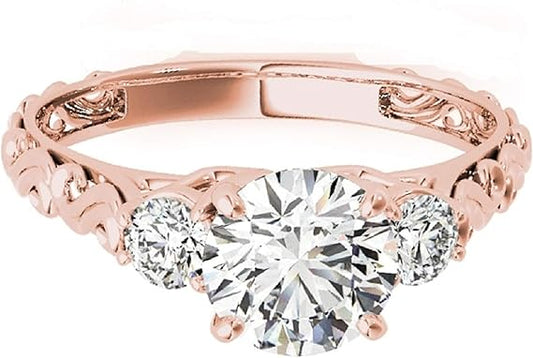 Diamond 0.75 Carat Three Stone Engagement Ring In 10K Solid Rose, White & Yellow Gold, Best Valentinesday Gift