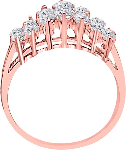 Diamond Engagement Ring For Women 1 Carat Round Shape White Diamond Prong Setting 14 Stone Engagement Aniversary Ring In 10K Solid Rose Gold By AoneJewelry Collection