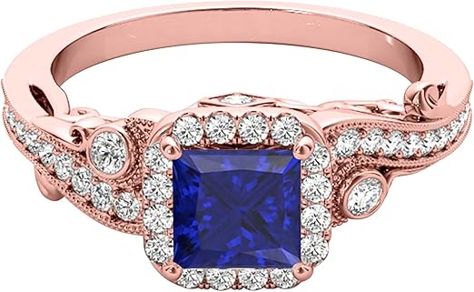 Diamond Engagement Ring For Women 1.55 Carat Princess Cut Created Sapphire Prong Setting 51 Stone Engagement Aniversary Ring In 18K Solid Rose Gold By AoneJewelry Collection