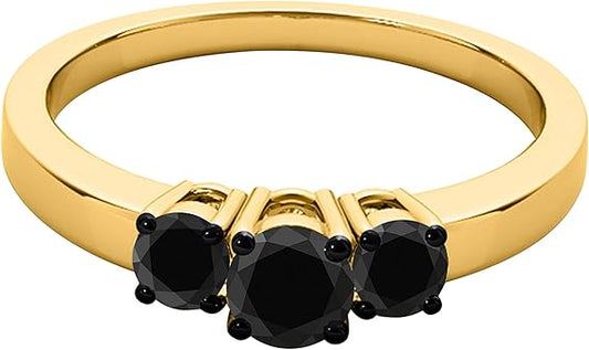 Black Diamond Three Stone Engagement Ring In 14K Rose, White & Yellow Gold, Best Valentinesday Gift