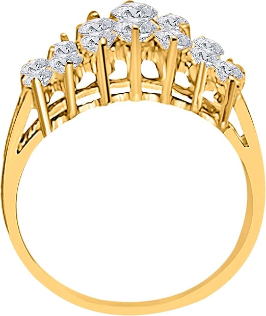 Diamond Engagement Ring For Women 1 Carat Round Shape White Diamond Prong Setting 14 Stone Engagement Aniversary Ring In 10K Solid Yellow Gold By AoneJewelry Collection