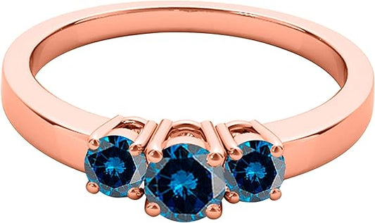 1/2 Carat Natural Blue Diamond Three Stone Ring In 14K Rose, White & Yellow Gold, Best Valentinesday Gift