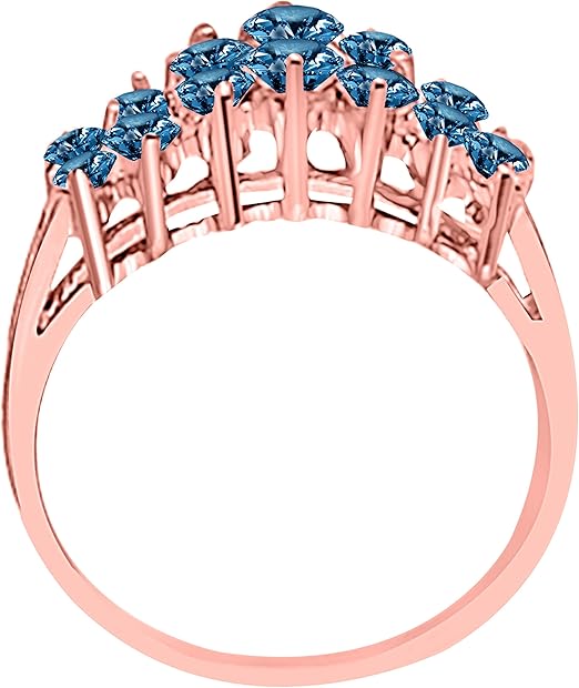 Diamond Engagement Ring For Women 1 Carat Round Shape Blue Diamond Prong Setting 14 Stone Engagement Aniversary Ring In 10K Solid Rose, White & Yellow Gold By AoneJewelry Collection