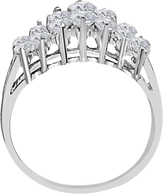 Diamond Engagement Ring For Women 1 Carat Round Shape White Diamond Prong Setting 14 Stone Engagement Aniversary Ring In 10K Solid White Gold By AoneJewelry Collection