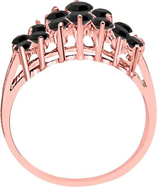 Diamond Engagement Ring For Women 1 Carat Round Shape Black Diamond Prong Setting 14 Stone Engagement Aniversary Ring In 10K Solid Rose, White & Yellow Gold By AoneJewelry Collection