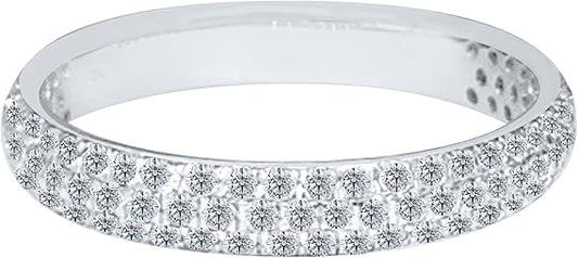 (0.41-0.58 Carat Natural Round White Diamond Half-Three Row Eternity (Ring Size(5-6)) Wedding/Engagement Band For Women/Girls In 14K White Gold